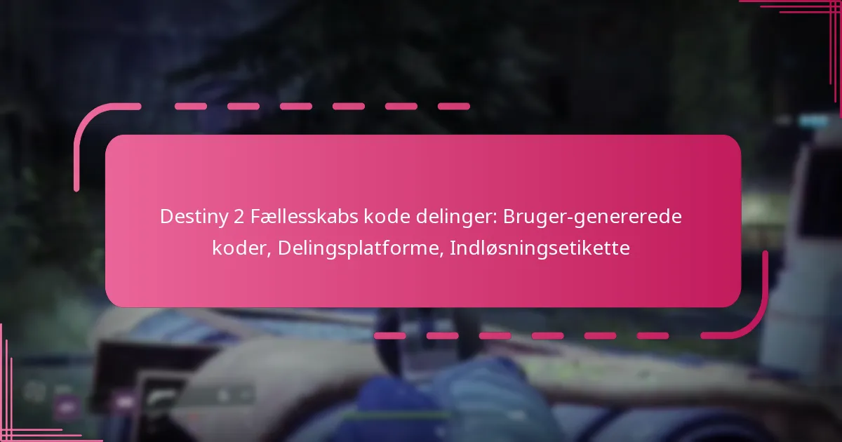 Destiny 2 fællesskabs kodeudvekslinger refererer til bruger-genererede koder, som spillere opretter og deler for at forbedre deres spiloplevelse. Disse koder kan låse op for forskellige in-game genstande, belønninger eller oplevelser, hvilket fremmer samarbejde og engagement inden for spillerfællesskabet.