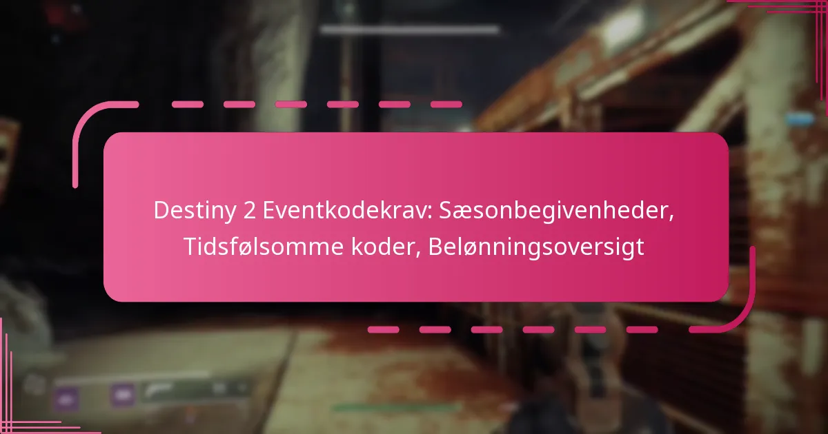 I Destiny 2 giver sæsonbegivenheder spillerne tidsbegrænsede aktiviteter, der introducerer unikke udfordringer og belønninger, hvilket forbedrer den samlede spiloplevelse. For at maksimere dine belønninger skal du sørge for at indløse tidsfølsomme koder, som kan indløses inden for en bestemt tidsramme for værdifulde genstande i spillet. Deltagelse i disse begivenheder fremmer ikke kun fællesskabsdeltagelse, men giver også spillerne mulighed for at tjene udstyr, kosmetik og valuta, der bidrager til deres progression.