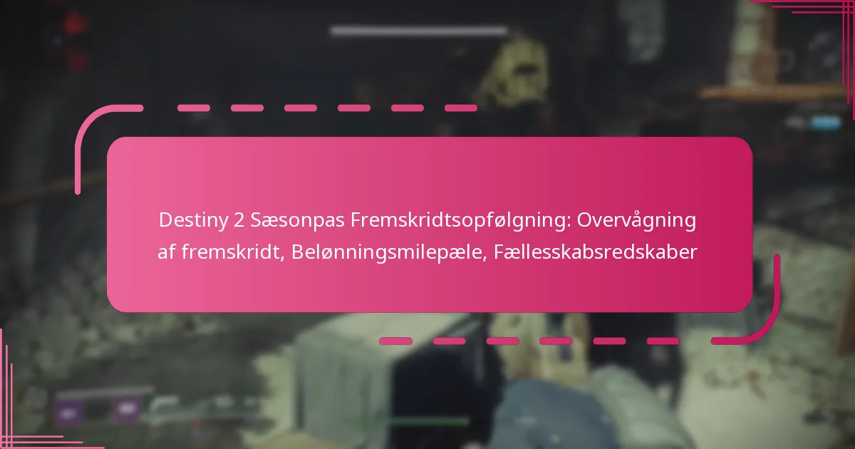 At overvåge din fremgang i Destiny 2 Season Pass involverer brug af forskellige in-game indikatorer og tredjepartsredskaber til at spore din fremgang mod belønninger. Ved at forstå nøglemetrikker og fokusere på daglige og ugentlige milepæle kan du effektivt styre dit gameplay og maksimere dine belønninger.