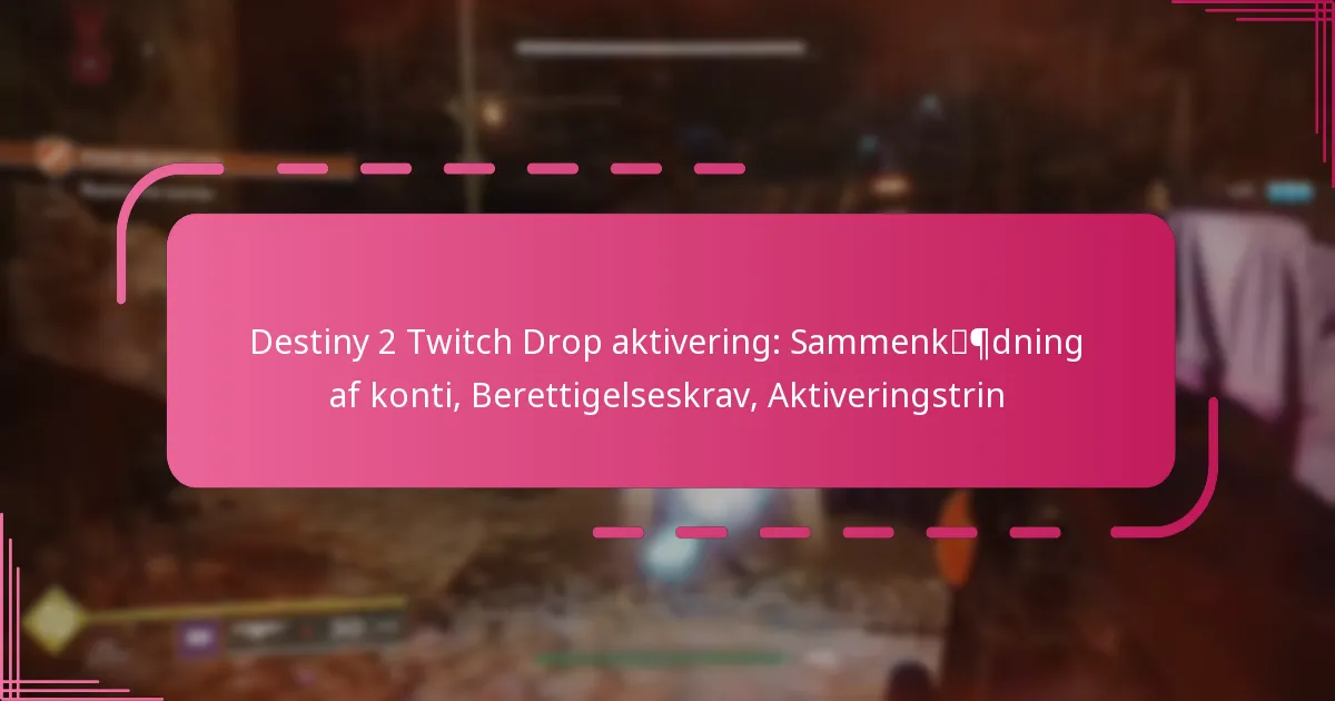 At linke din Destiny 2-konto til din Twitch-konto giver dig mulighed for at optjene eksklusive belønninger i spillet gennem Twitch Drops. For at deltage skal du opfylde specifikke berettigelseskrav, herunder kontolinkning og minimum seertider. Når dine konti er forbundet, skal du følge aktiveringstrinene for at begynde at optjene belønninger, mens du nyder dine yndlingsstreams.